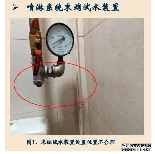 11、常见问题 自动喷水灭火系统的末端试水装置设置在室内不便于排水的房间内且管路被封堵,无法进行日常测试与泄水。
