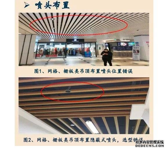 15、常见问题 装设网格、栅板类通透性吊顶场所的喷头设置位置和喷头选型错误。