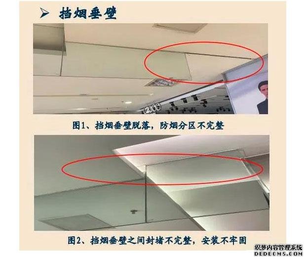 管理要求 挡烟垂壁是划分防烟分区的主要措施,应采用不燃材料制成;防烟分区是为了延缓火灾时烟气蔓延速度而设置,所以应保证建筑内挡烟垂壁完整好用